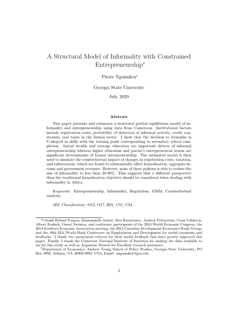 A Structural Model of Informality With Constrained Entrepreneurship ...