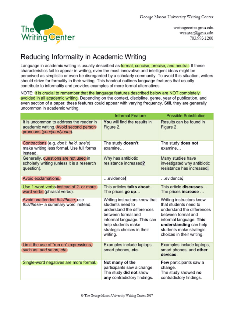 Reducing Informality in Academic Writing: Language Features & | Course Hero