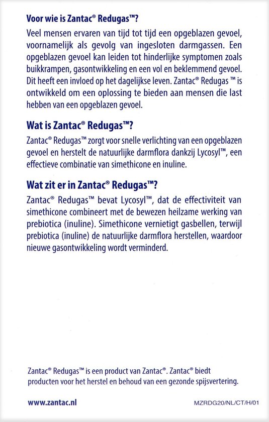 bol.com | Zantac Redugas – Snel verlichten van opgeblazen gevoel - 20 ...