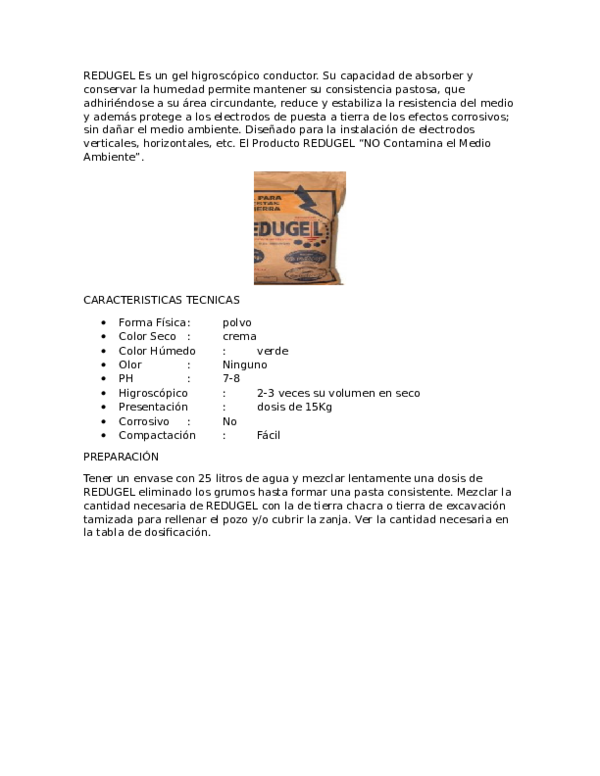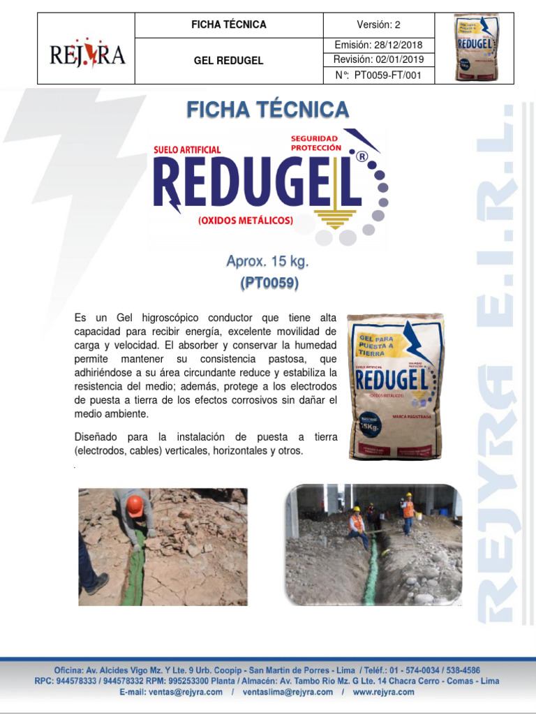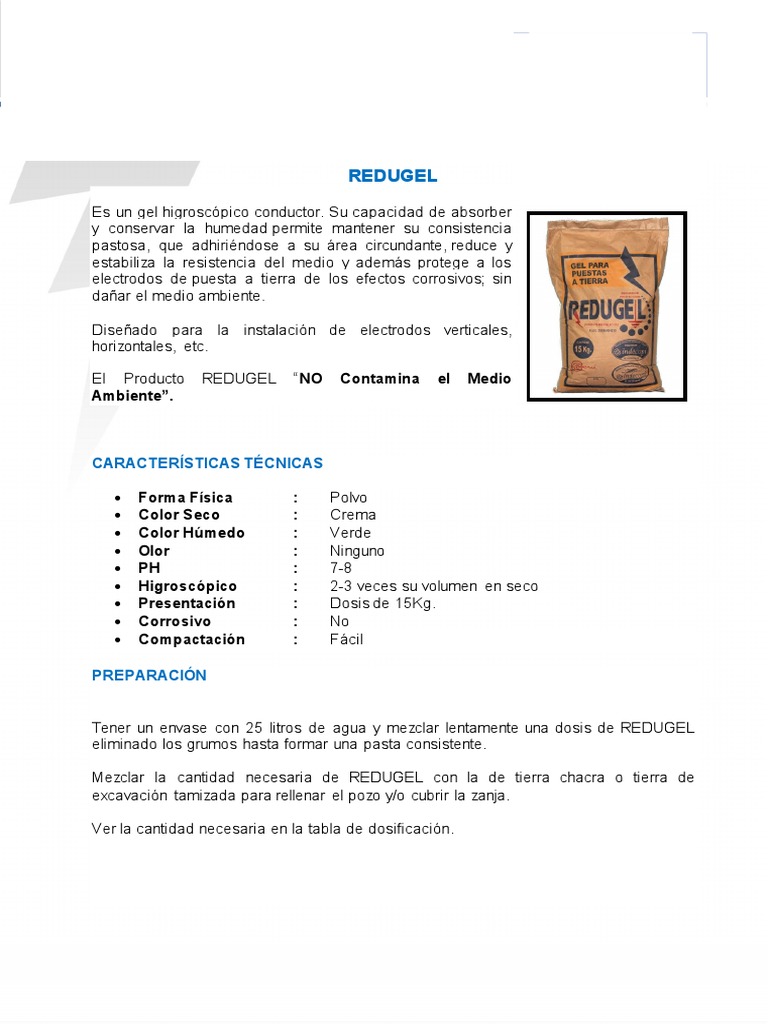 Gel Redugel - MATERIALES PARA SISTEMA DE PUESTA A TIERRA PROTECCION ...
