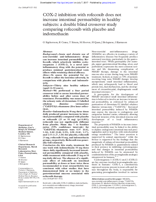 (PDF) COX-2 inhibition with rofecoxib does not increase intestinal ...