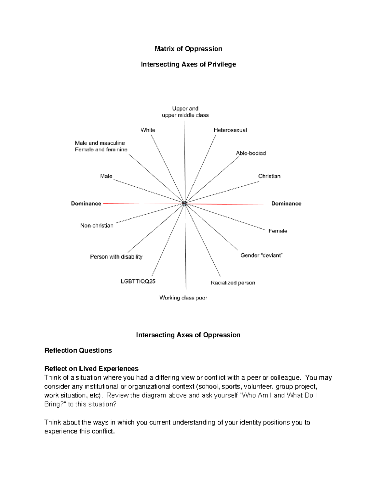 Reflection Matrix of Oppression lived experience SOC 2223 - Matrix of ...
