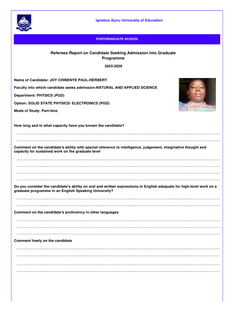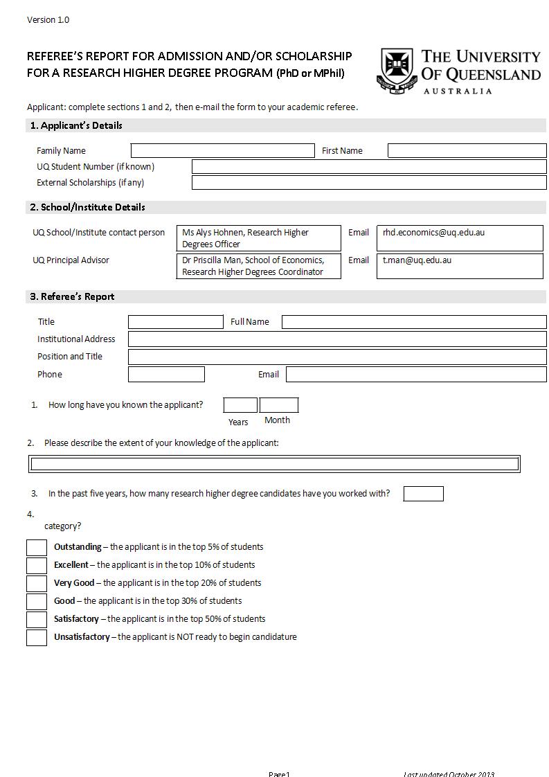 Referee Report Form for Graduate Applications | PDF | Postgraduate ...