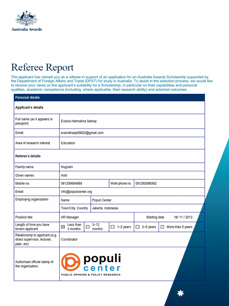 Referee Report for Australia Awards Scholarship | PDF | Motivation ...