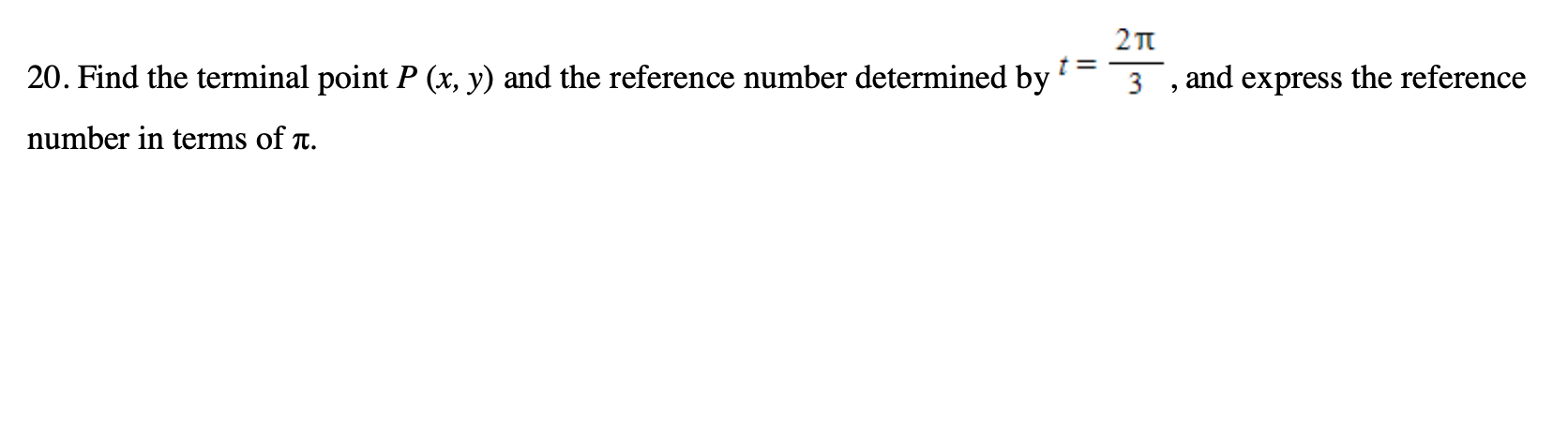 Solved 20. Find the terminal point P(x,y) and the reference | Chegg.com