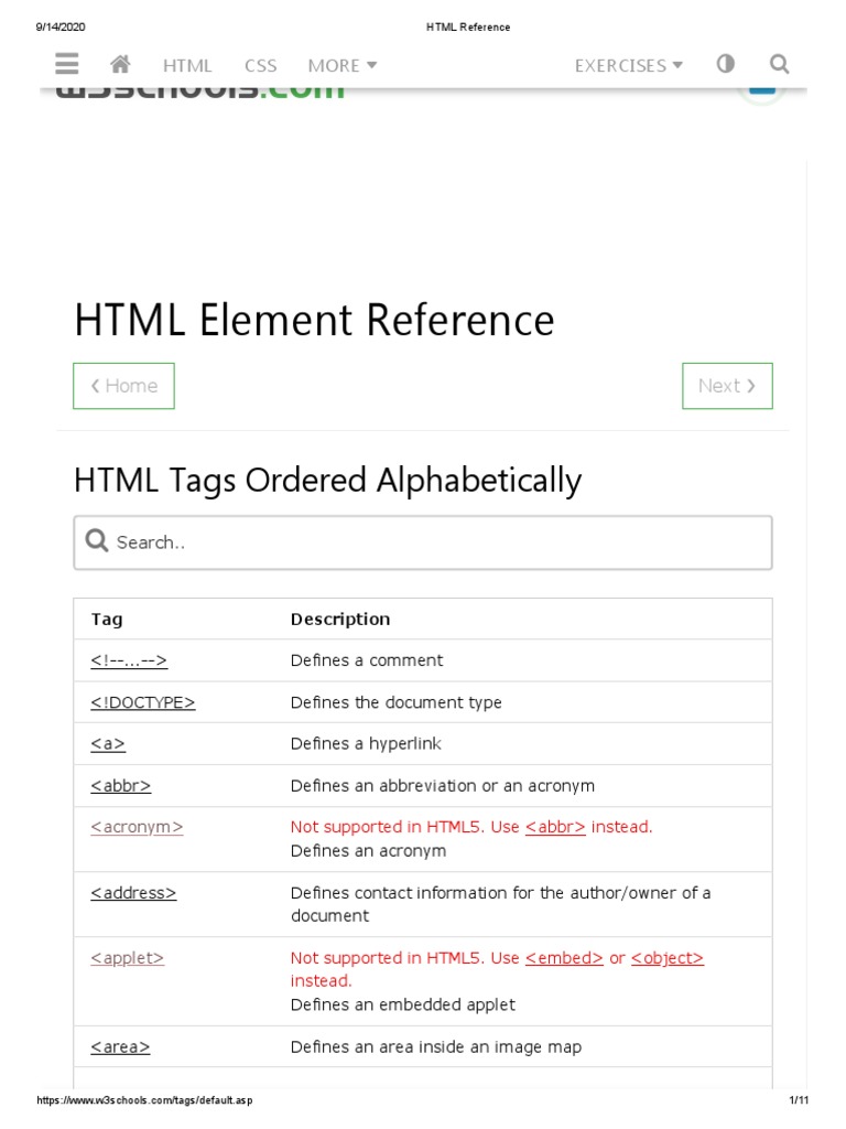 W3schools: HTML Element Reference | PDF | Html Element | Html