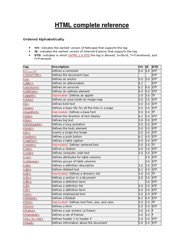 HTML Element Reference: HTML Tags Ordered Alphabetically | PDF | Html ...