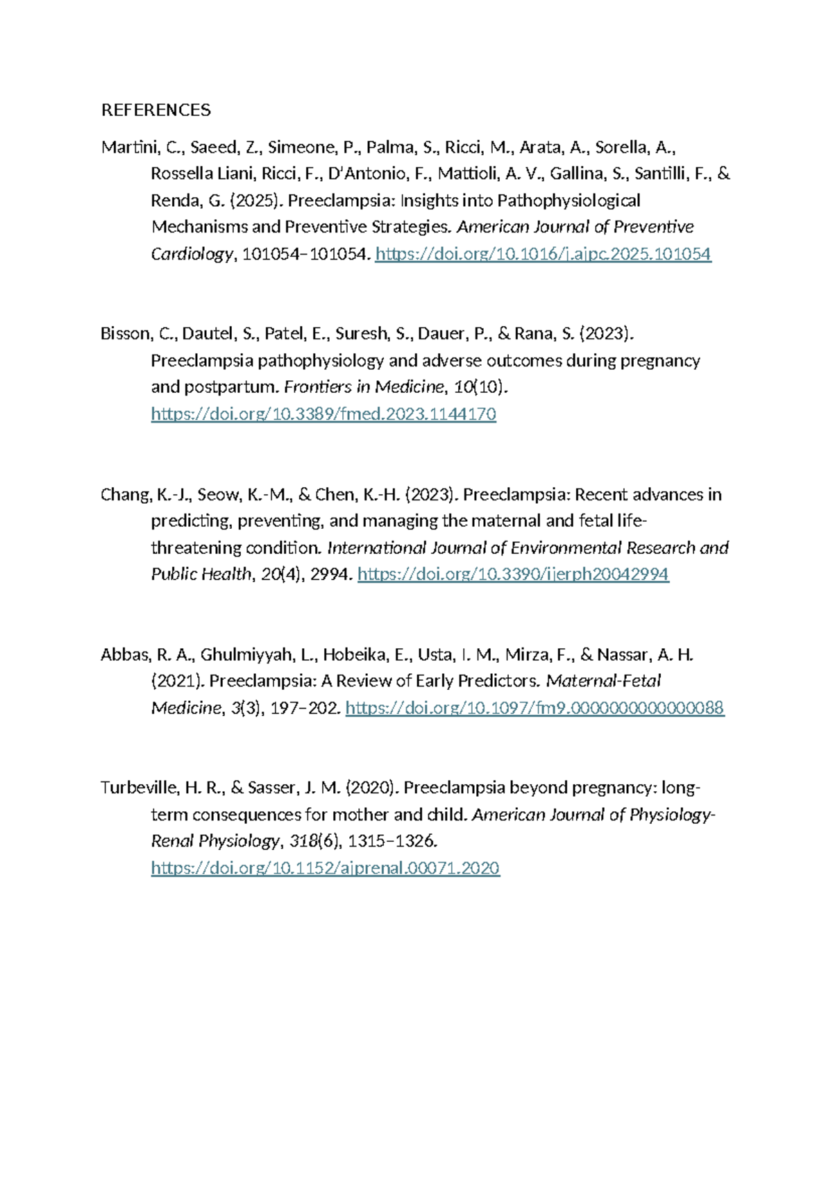 Preeclampsia Research References for Medical Studies - Studocu