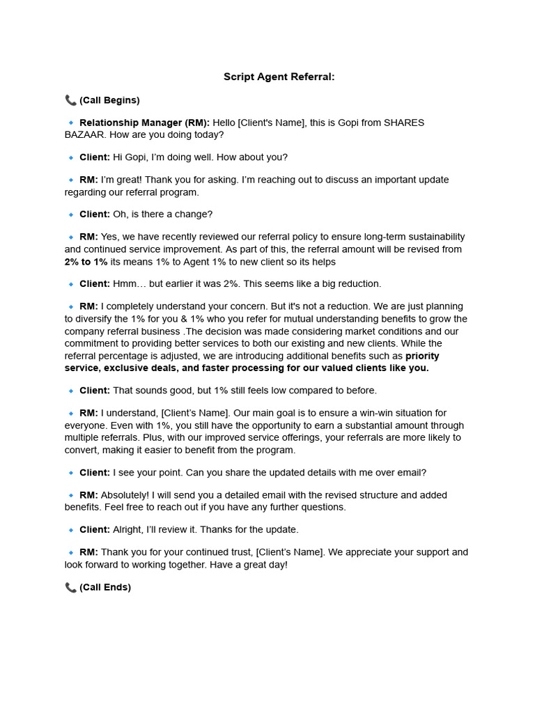 Script New Agent Referral 2025 | PDF