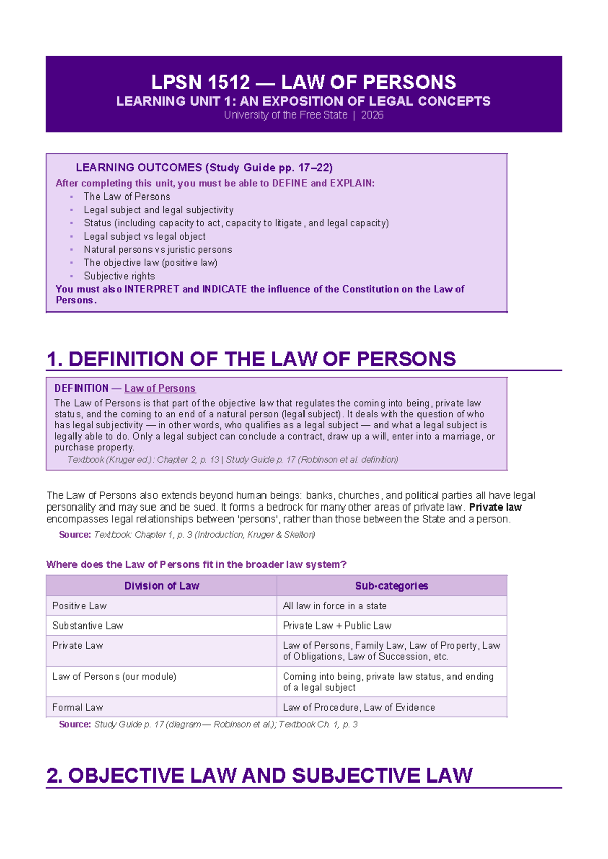 LPSN 1512 Law of Persons Learning Unit 1 Summary and Key Concepts - Studocu