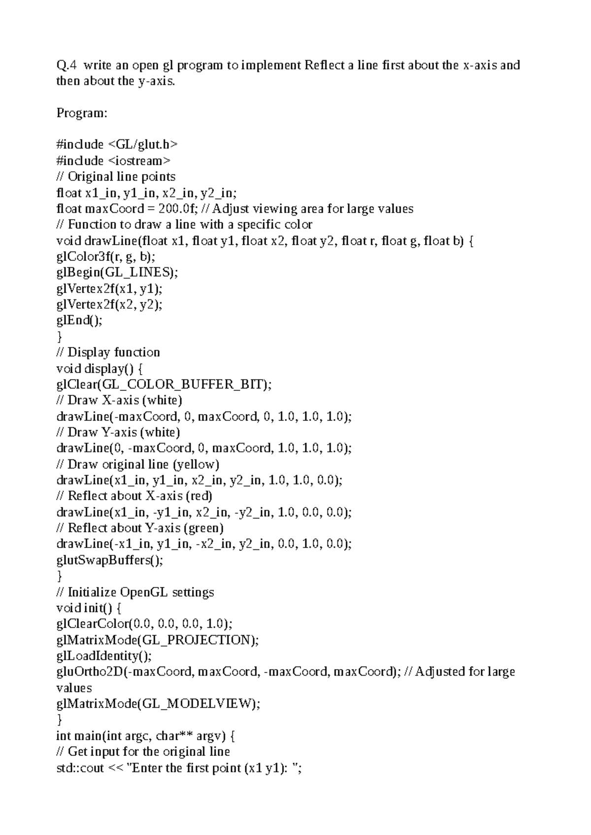 11 OpenGL Program to Perform 2D Transformation: 1) Reflection and 2 ...