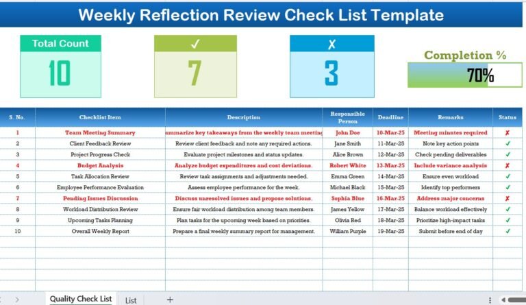 Weekly Reflection Monitoring Checklist in Excel - Next Gen Templates