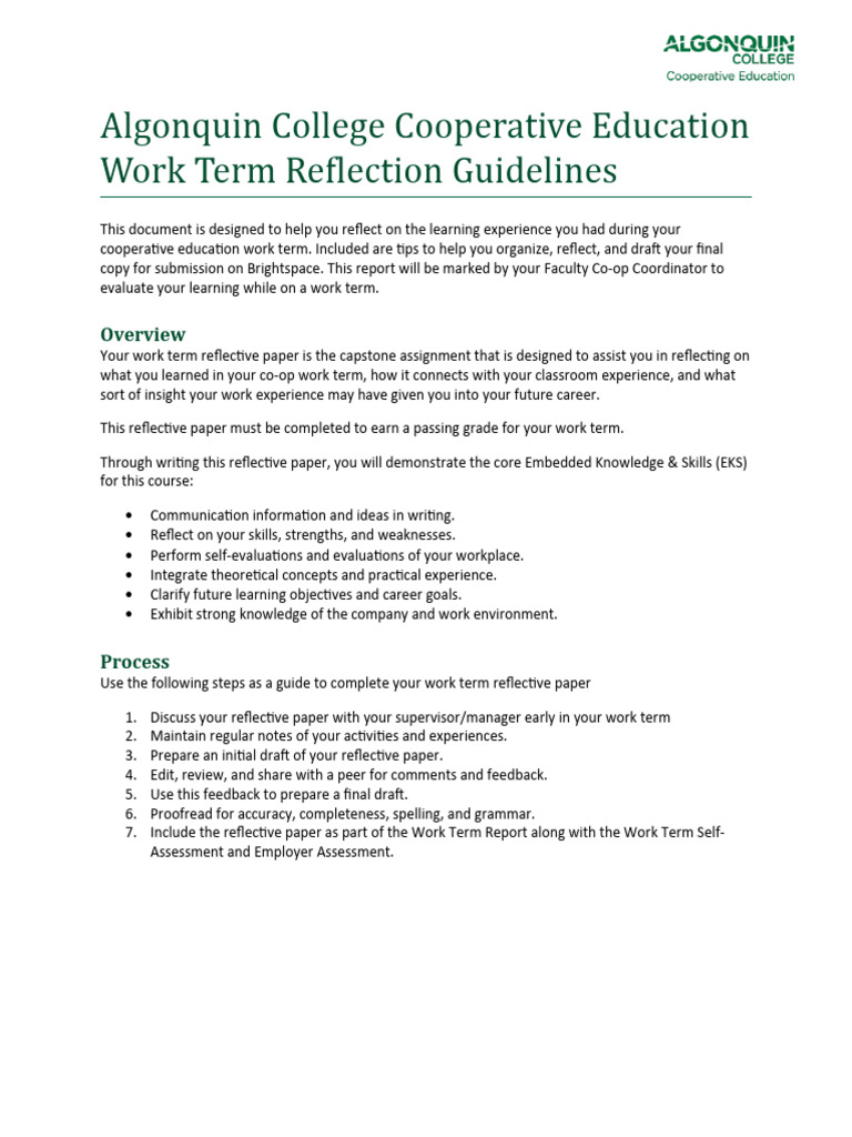 Co-op Work Term Reflection Guide | PDF | Experience | Learning