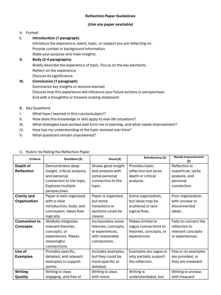 Reflection Paper Guidelines and Rubric | PDF | Citation | Cognitive Science