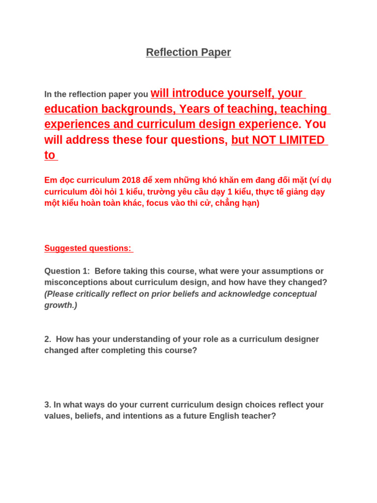 Reflection Paper Guidelines and Structure (ENG 101) - Studocu