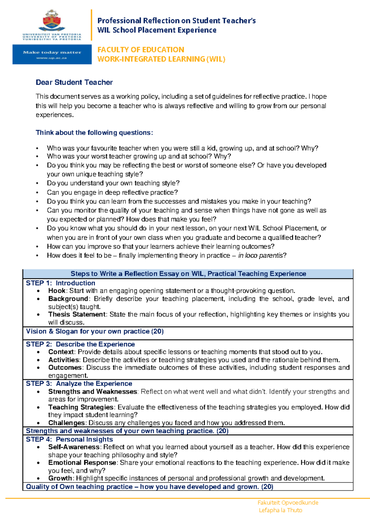 WIL Professional Reflection Protocol Guidelines - Professional ...