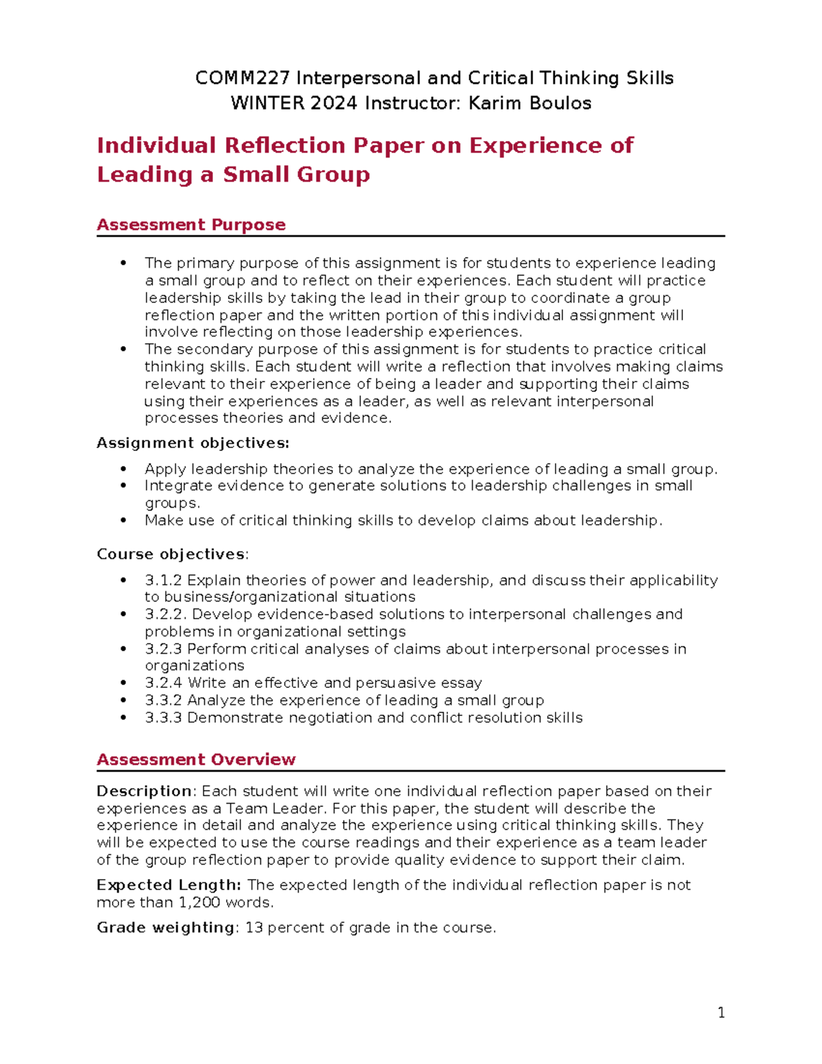 COMM 227 Individual Reflection Paper Guidelines - Winter 2024 - Studocu