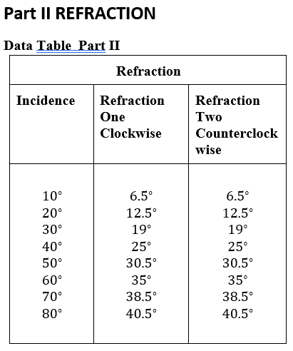 Solved Lab 9 Reflection and Refraction Table 4: Dispersion | Chegg.com