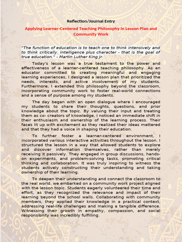 Reflection Journal Entry of Elementary English Teacher | PDF ...