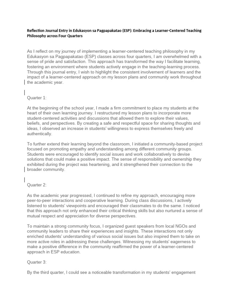 Reflection Journal Entry in ESP | PDF | Learning | Critical Thinking