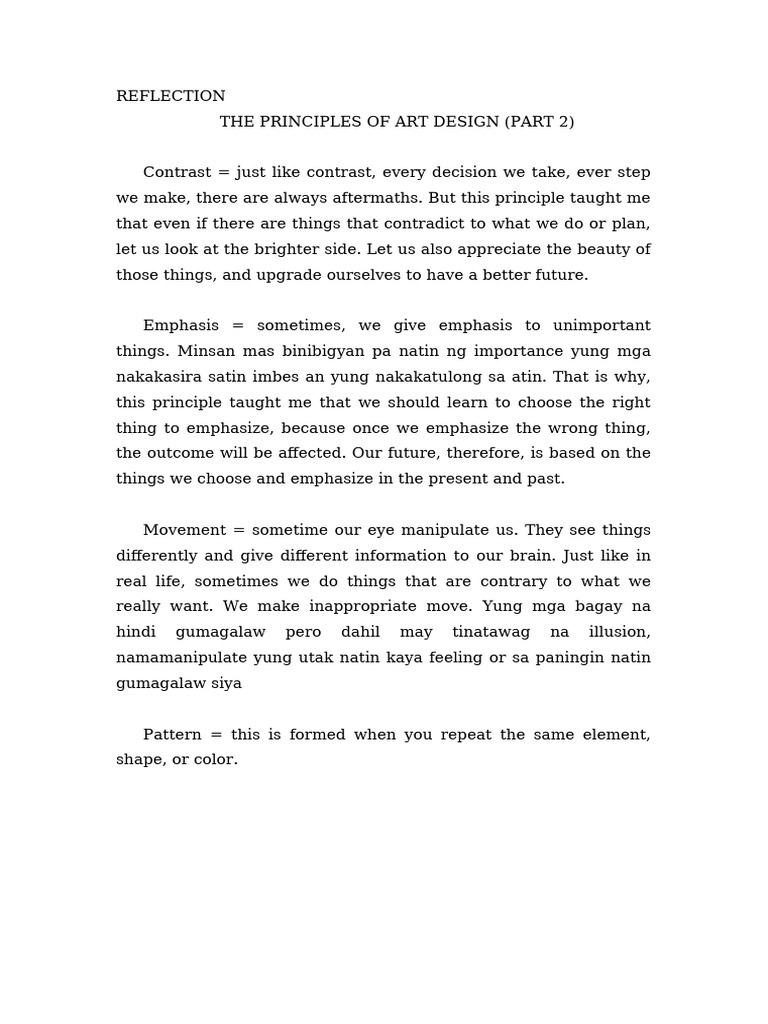 THE PRINCIPLES OF ART DESIGN (PART 2) Reflection | PDF