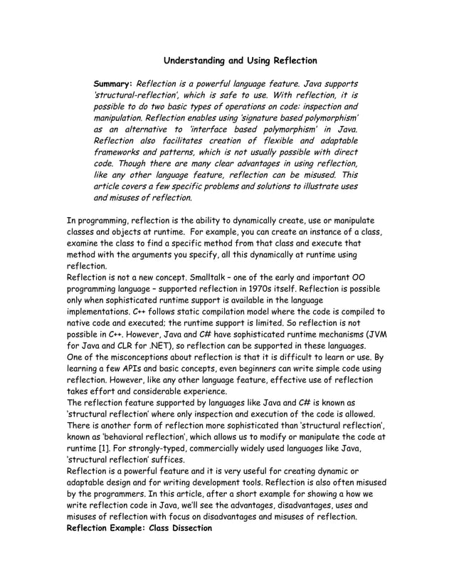 Understanding And Using Reflection | PDF