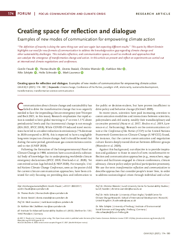 (PDF) Creating space for reflection and dialogue: Examples of new modes ...