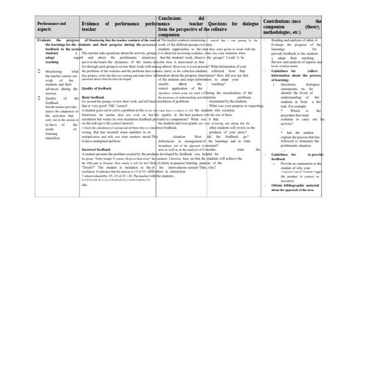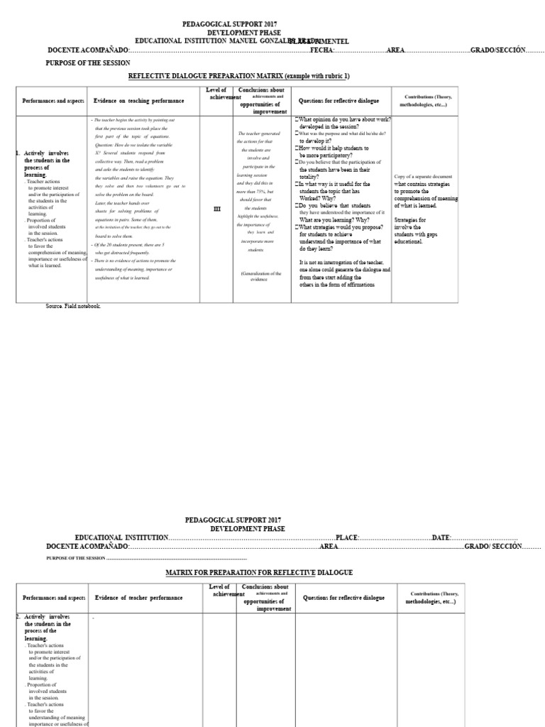 Example of Matrix Preparation For Reflective Dialogue | PDF | Teachers ...