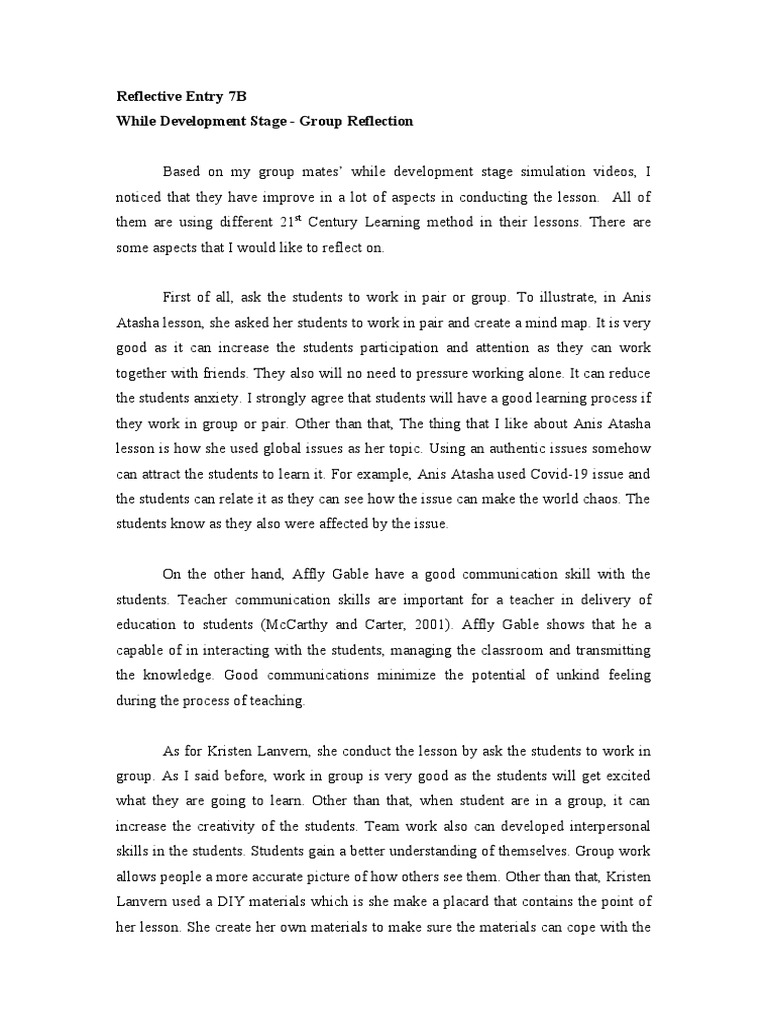 Reflective Entry 7B While Development Stage - Group Reflection | PDF ...