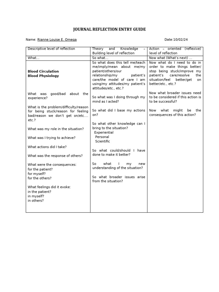 Example of A Reflection Journal Entry | PDF