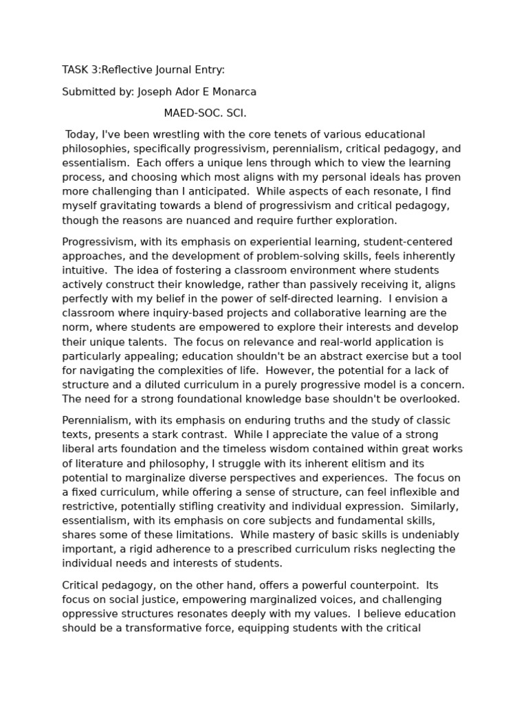 Reflection Journal Entry 3 | PDF | Critical Thinking | Learning