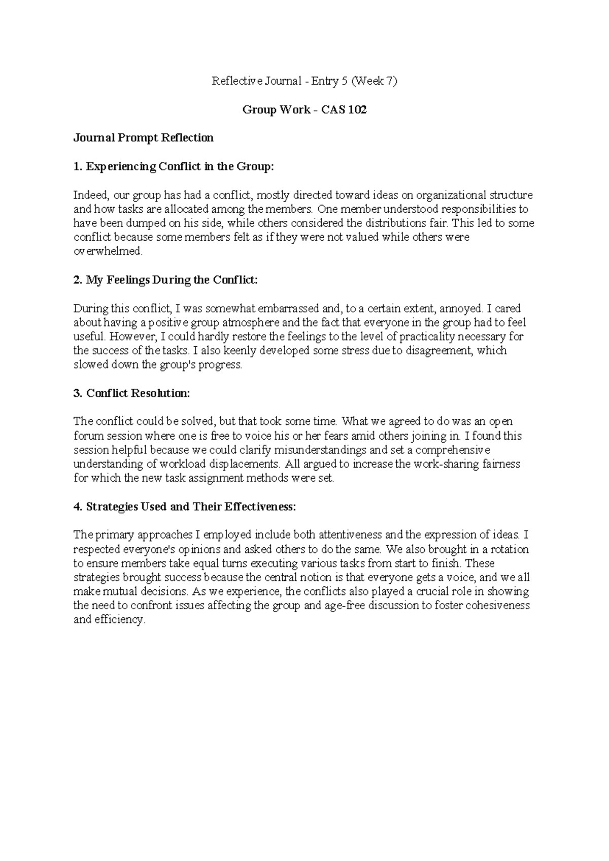 Reflective Journal Entry 5 - Group Work Reflection (CAS 102) - Studocu