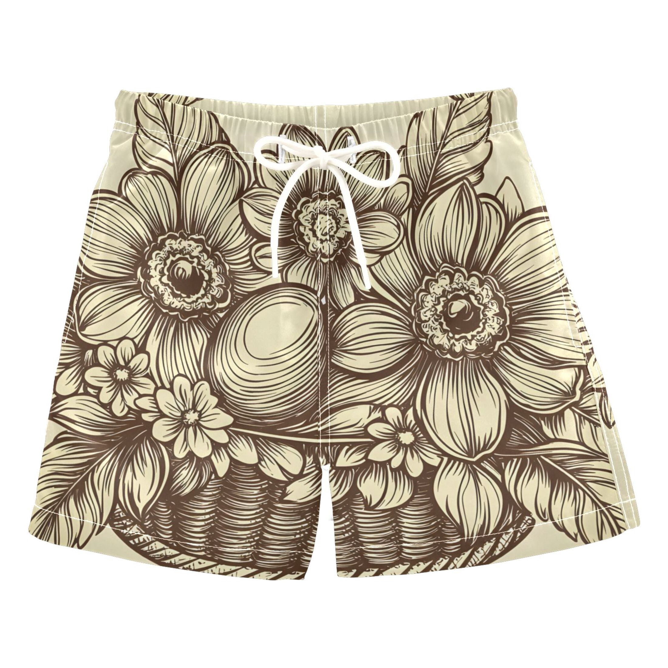 BZSMCE Beach Shorts Trunks Quick Dry Short Flower Basket Pattern Of ...