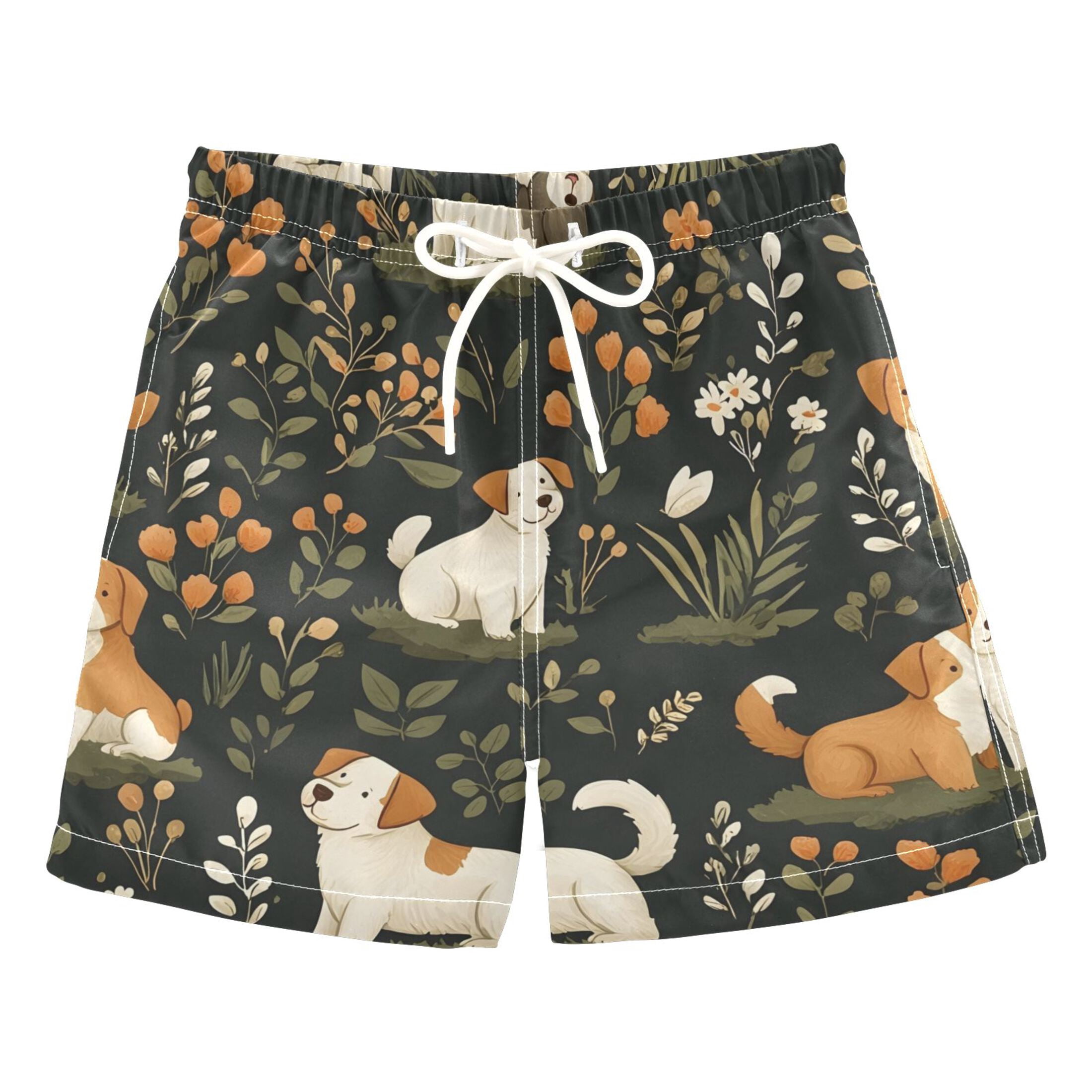 BZSMCE Beach Shorts Trunks Quick Dry Short Garden Puppy Floral Pattern ...