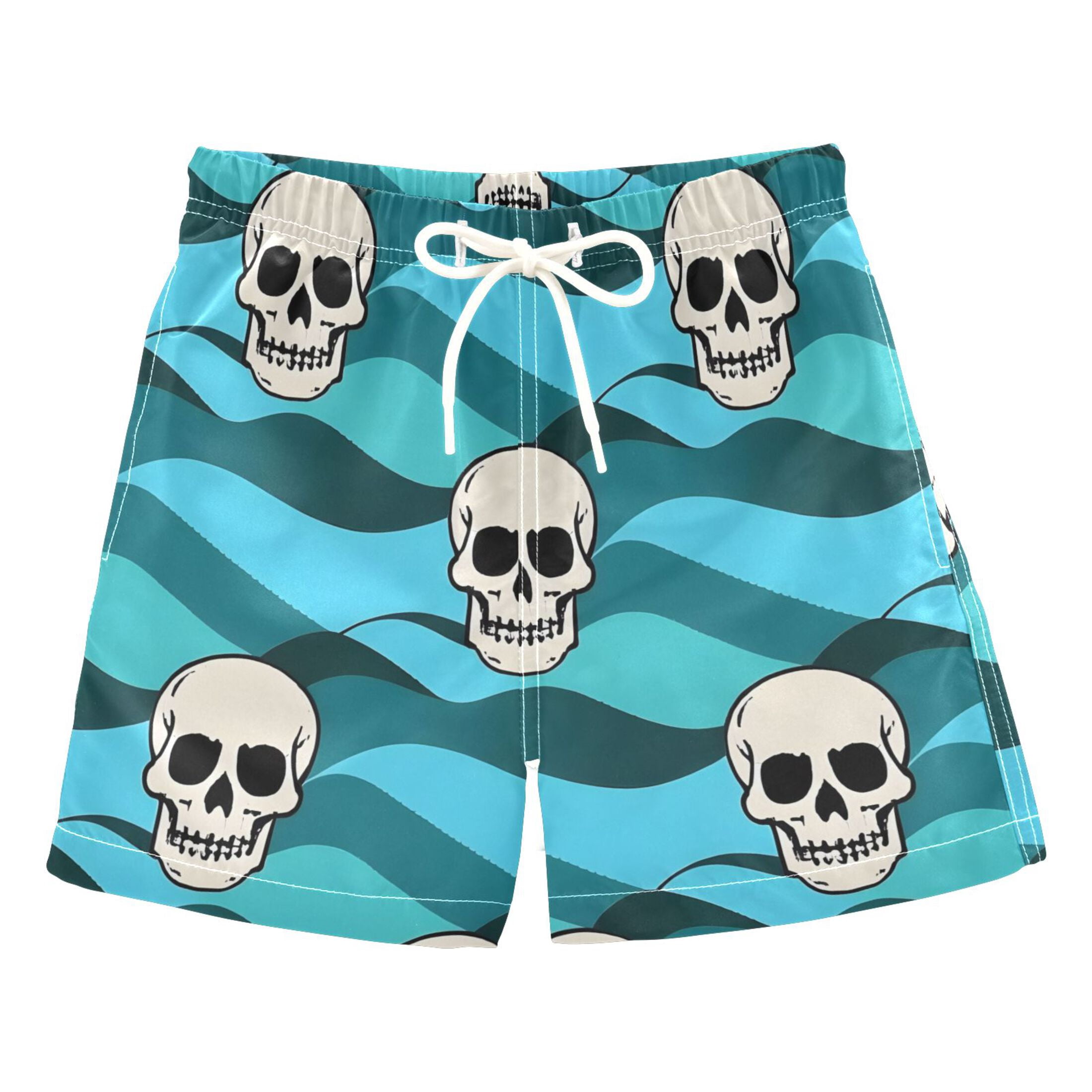 BZSMCE Beach Shorts Trunks Quick Dry Short Skull Wave Pattern Of ...