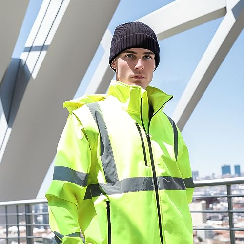 SHORFUNE High Visibility Reflective Softshell Safety Jacket for Men ...