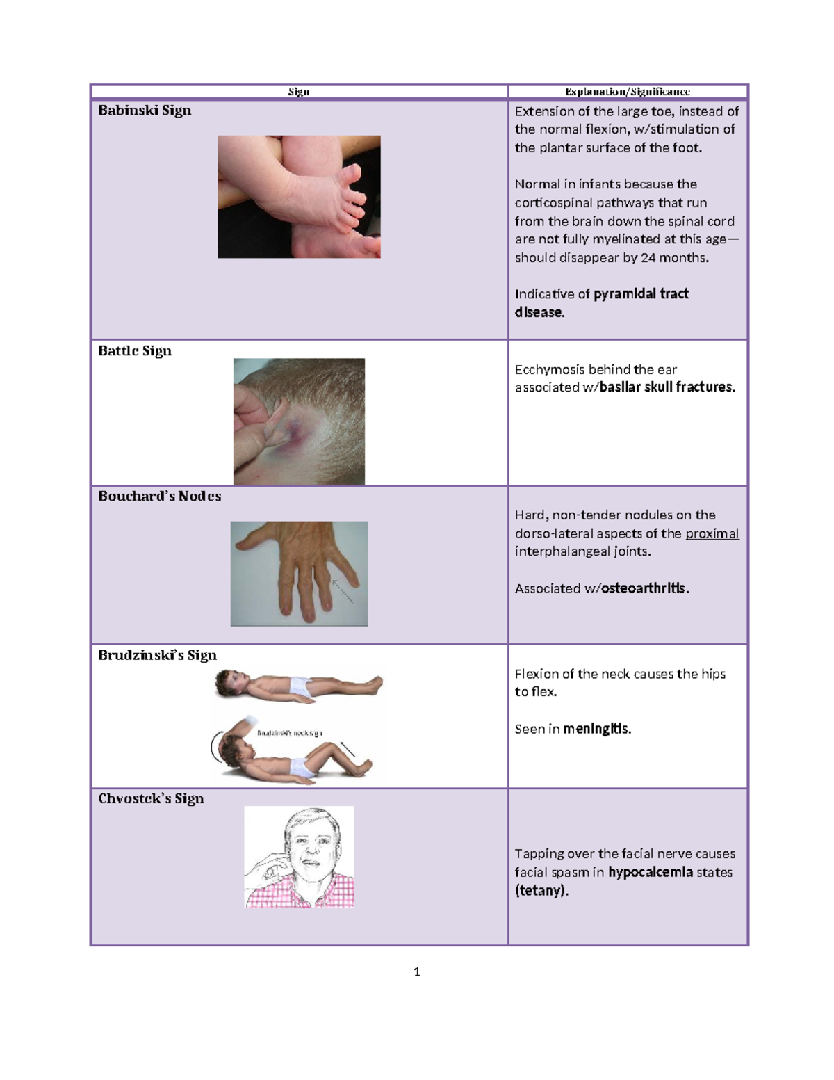 Signs Study Guide-2: Key Clinical Indicators and Reflexes - Studocu