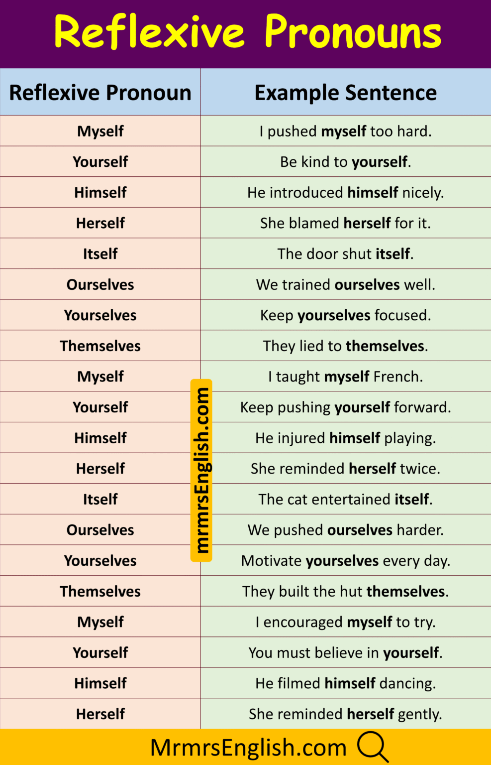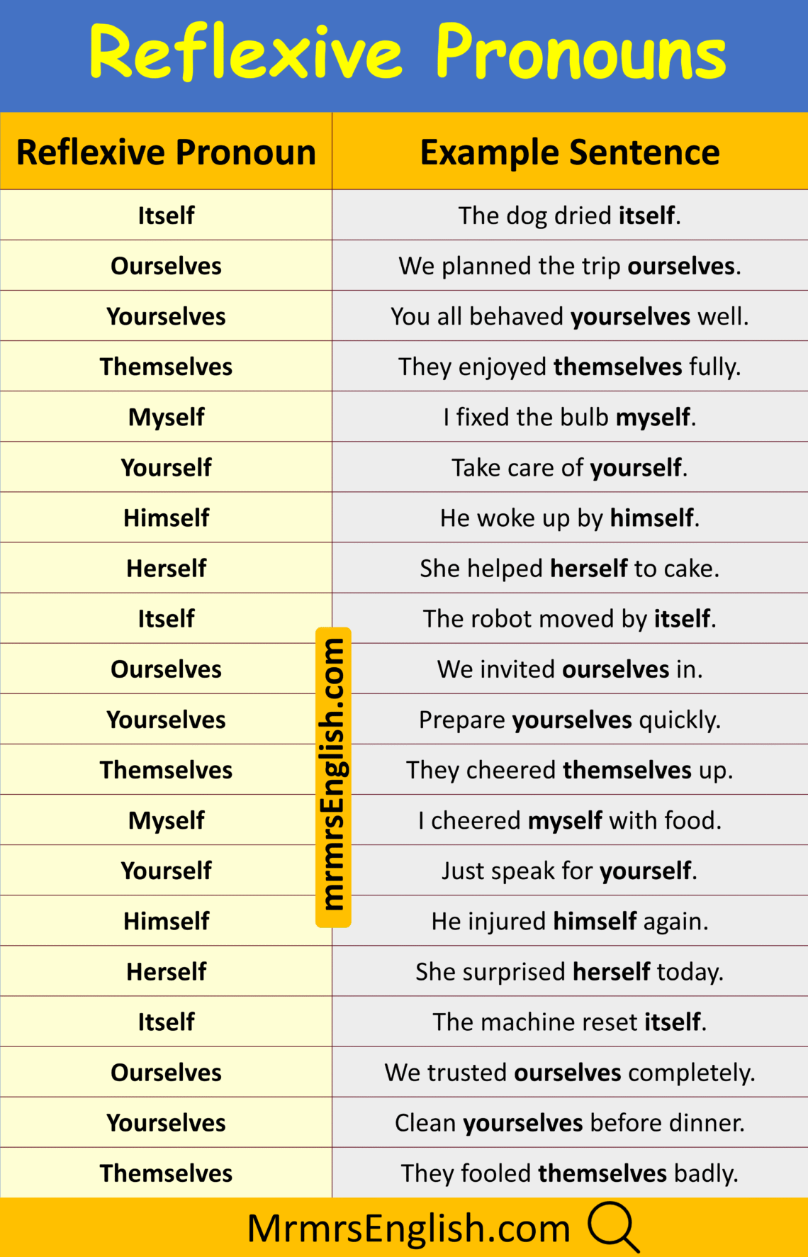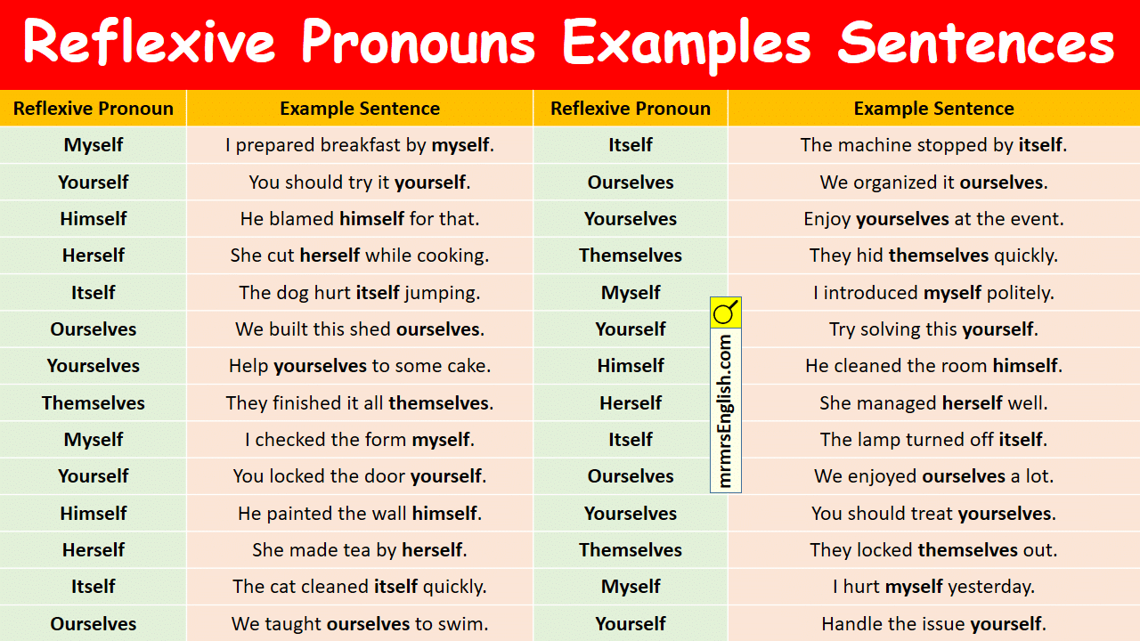 Reflexive Pronouns Examples Sentences in English with Pictures - MR MRS ...