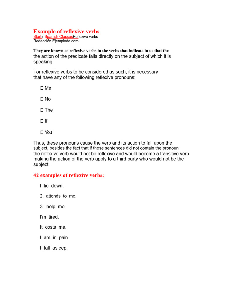 Example of Reflexive Verbs | PDF | Subject (Grammar) | Verb