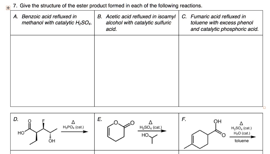 SOLVED: Give the structure of the ester product formed in each of the ...