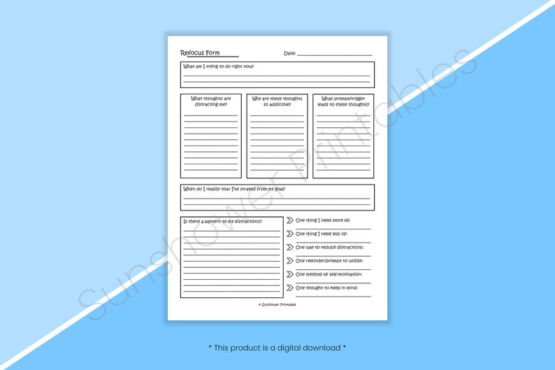 Refocus Form Printable Worksheet Productivity & - Etsy