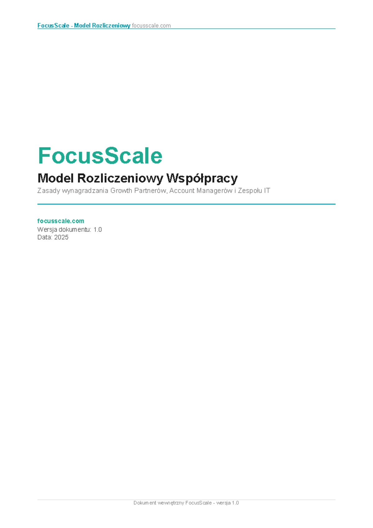 FocusScale Model Rozliczeniowy: Zasady Wynagradzania Partnerów IT - Studocu