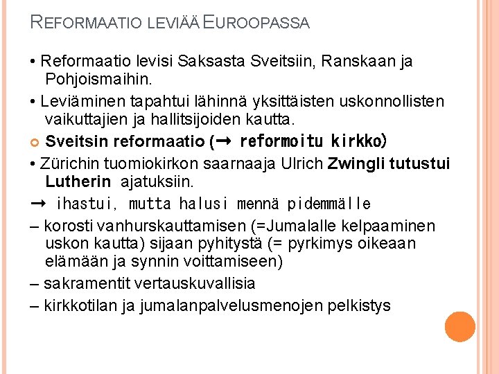 REFORMAATIO LEVI EUROOPASSA Reformaatio levisi Saksasta Sveitsiin Ranskaan
