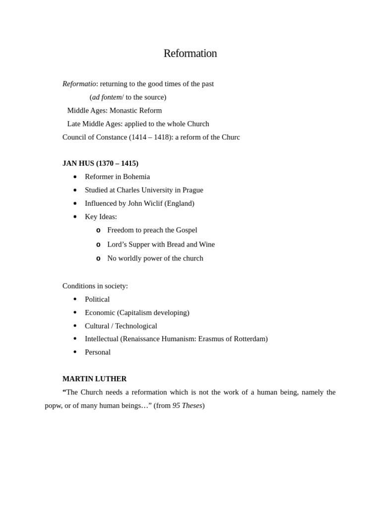 Reformation Overview: Key Events and Impacts (Sem-3) - Studocu