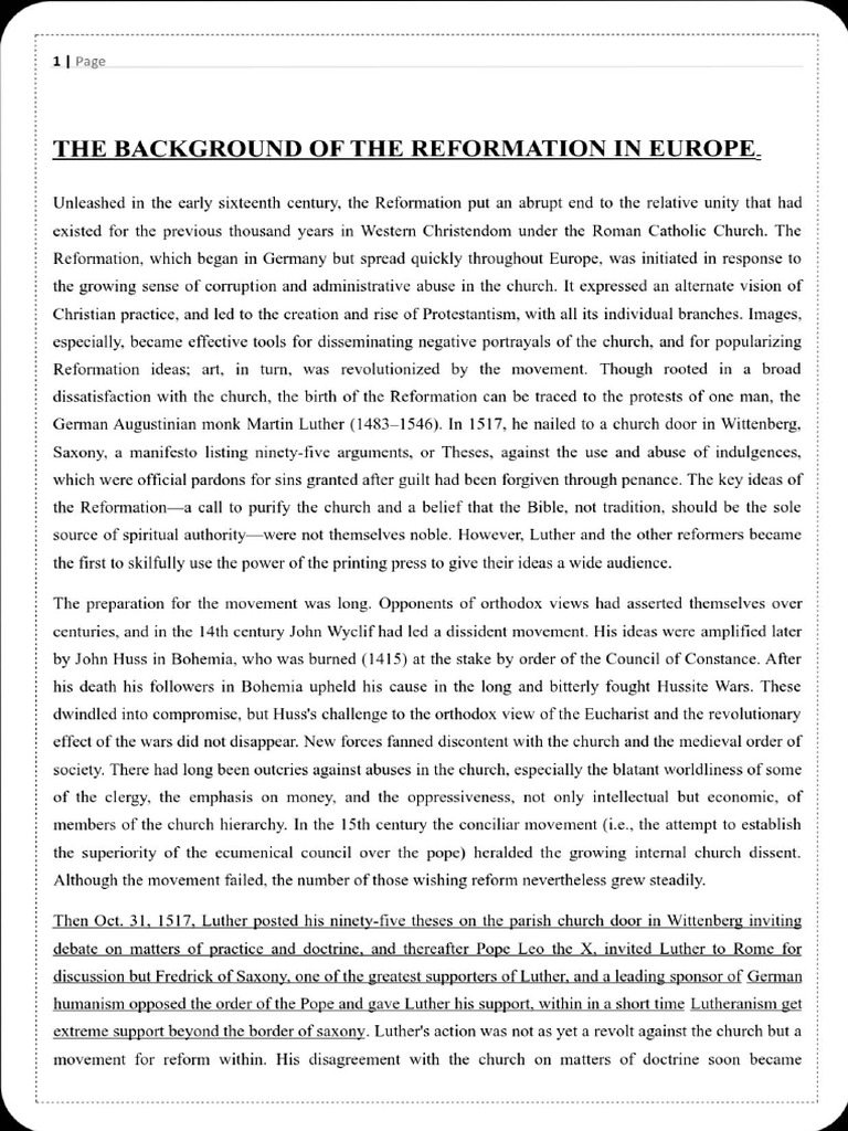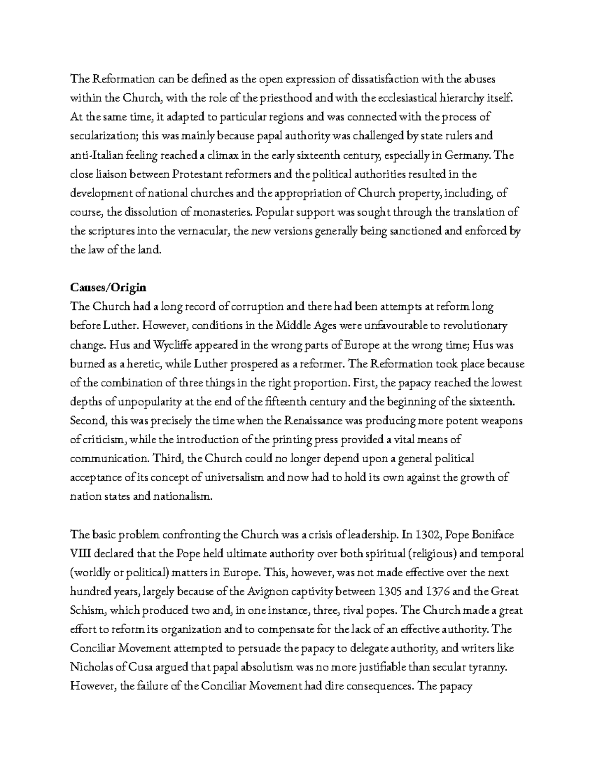Free Reformation Essay Examples and Topic Ideas | Studymoose.com
