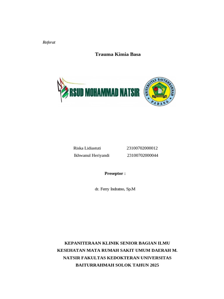 Makalah Refrat Trauma Kimia Mata | PDF