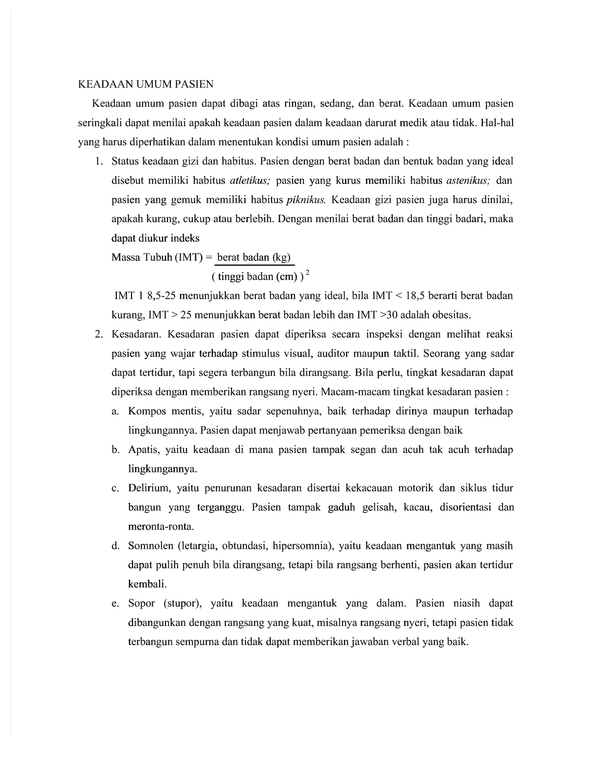 TUGAS REFRAT KLASIFIKASI KEADAAN UMUM PASIEN KEDOKTERAN - Studocu