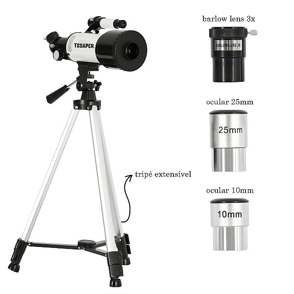 Telescópio Refrator F30070m 70mm Apertura 300mm Tripé Profissional Para ...