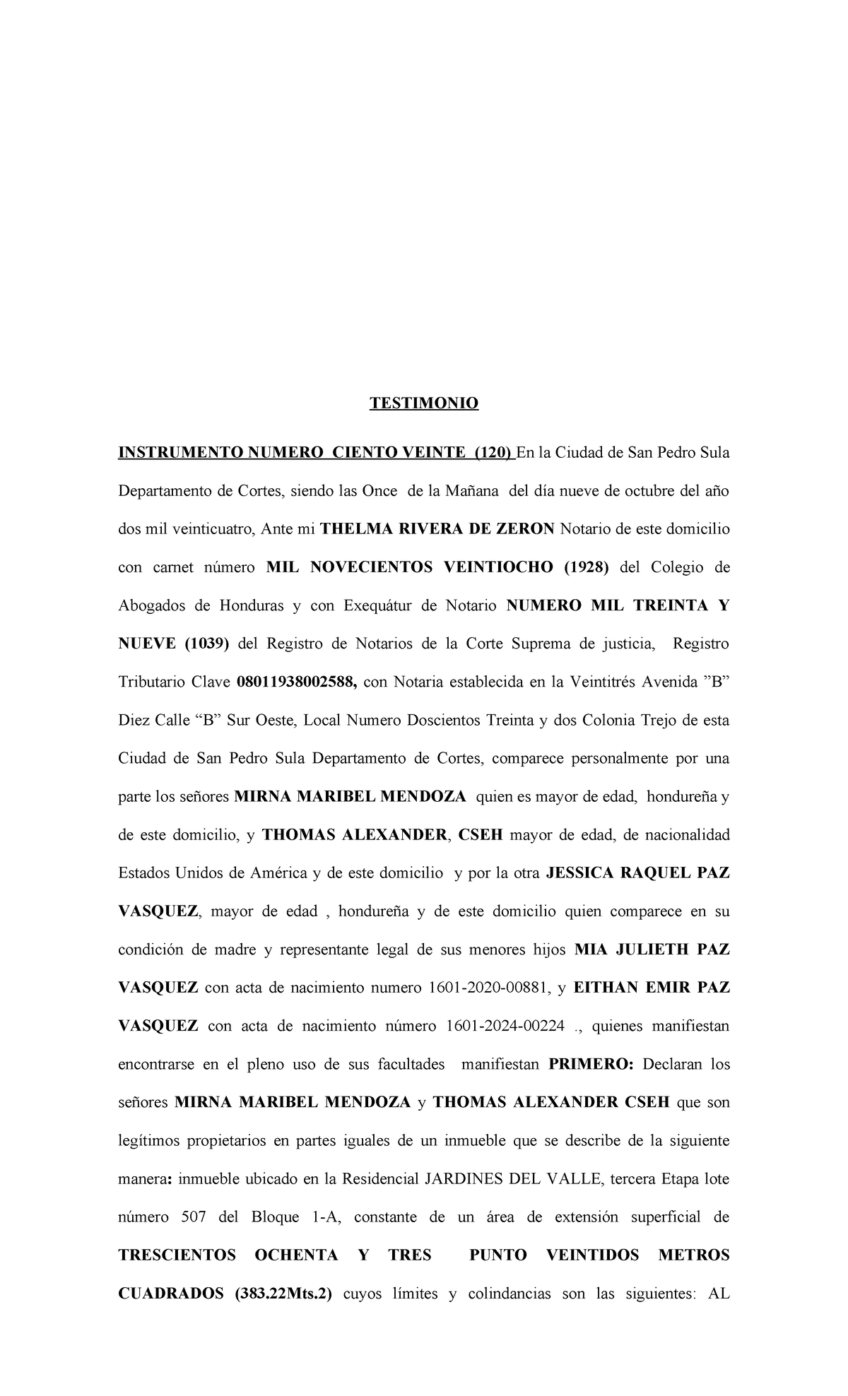 Escritura Jayme - DOCUMENTO PARA REFRENDAR INFORMACION - TESTIMONIO ...