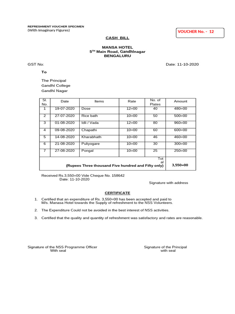 NSS Refreshment Voucher Sample | PDF